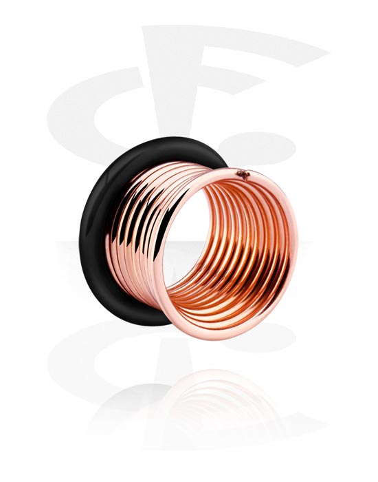 Single-flared tunnel (kirurgisk stål, rosenguld, blank finish) med spiraldesign og O-ring