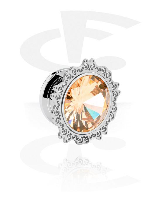 Tunnel, der skrues på (kirurgisk stål, sølv, blank finish) med pynt og diamantvedhæng i flere farver