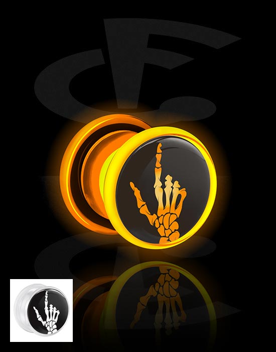 Tunnel, der skrues på (akryl, hvid) med LED-vedhæng og design med skelethånd