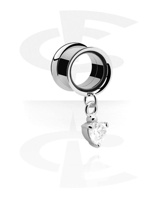 Double-flared tunnel (kirurgisk stål, sølv, blank finish) med hjertevedhæng og Krystalsten