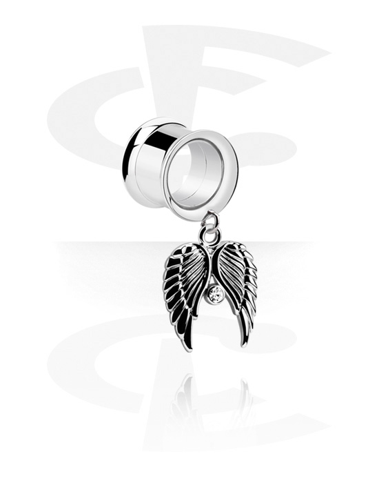 Double-flared tunnel (kirurgisk stål, sølv, blank finish) med vingevedhæng og Krystalsten