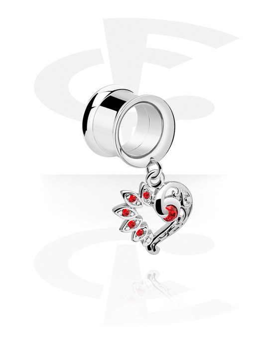 Double-flared tunnel (kirurgisk stål, sølv, blank finish) med hjertevedhæng og krystaller
