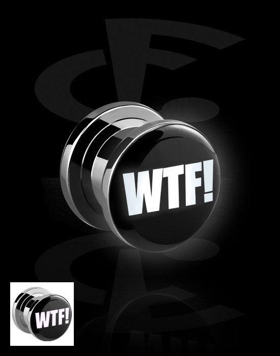 Tunnel, der skrues på (kirurgisk stål, sort, blank finish) med LED-vedhæng og Tekst: "WTF!"