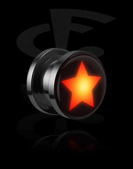 Tunnel, der skrues på (kirurgisk stål, sølv, blank finish) med LED-vedhæng og Stjernemotiv
