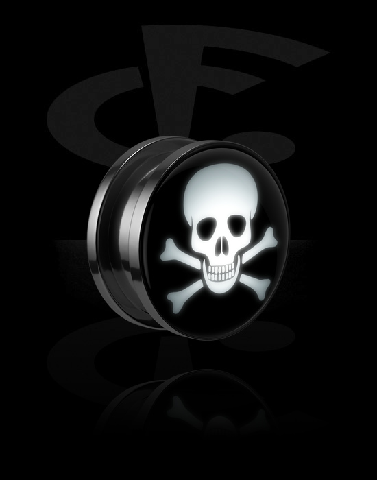 Tunnel, der skrues på (kirurgisk stål, sølv, blank finish) med LED-vedhæng og Dødningehovedmotiv