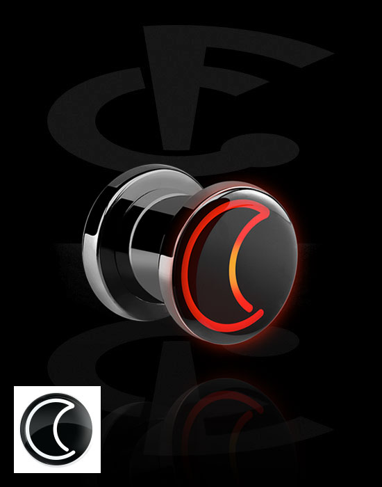 Tunnel, der skrues på (kirurgisk stål, sølv, blank finish) med LED-vedhæng og Månemotiv