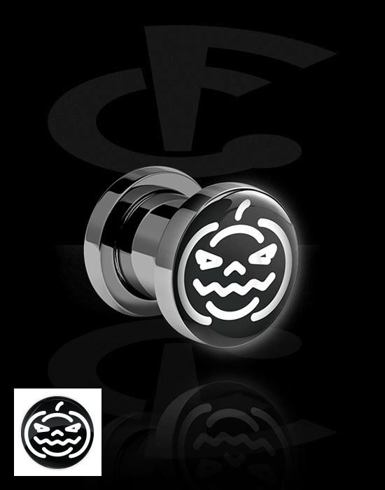 Tunnel, der skrues på (kirurgisk stål, sølv, blank finish) med LED-vedhæng og halloweenmotiv "skørt græskar"
