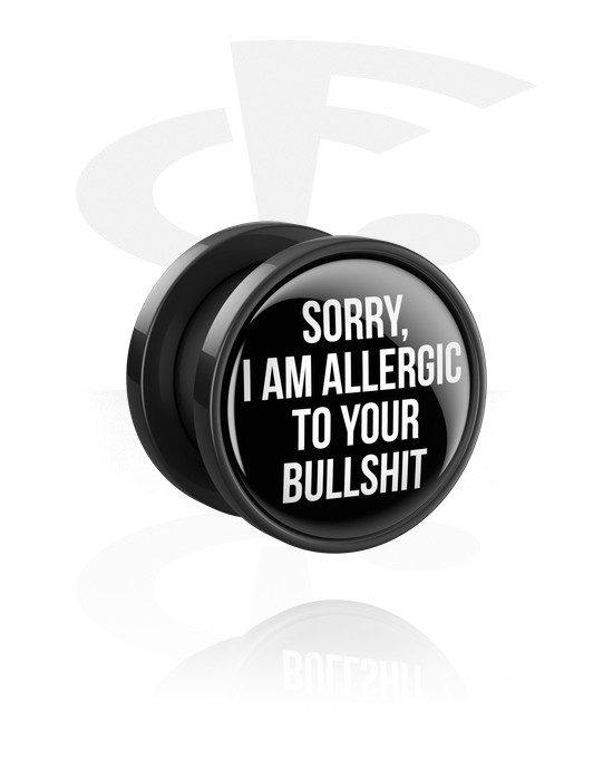 Tunnel, der skrues på (akryl, sort) med Tekst: "Sorry, I am allergic to your bullshit"