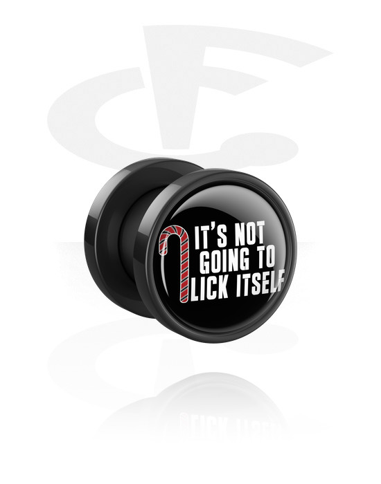 Tunnel, der skrues på (akryl, sort) med sukkerstang-motiv og tekst: "it's not going to lick itself"
