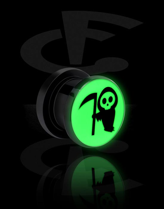 "Glow in the dark" screw-on tunnel (acrylic, black) med motiv "manden med leen"