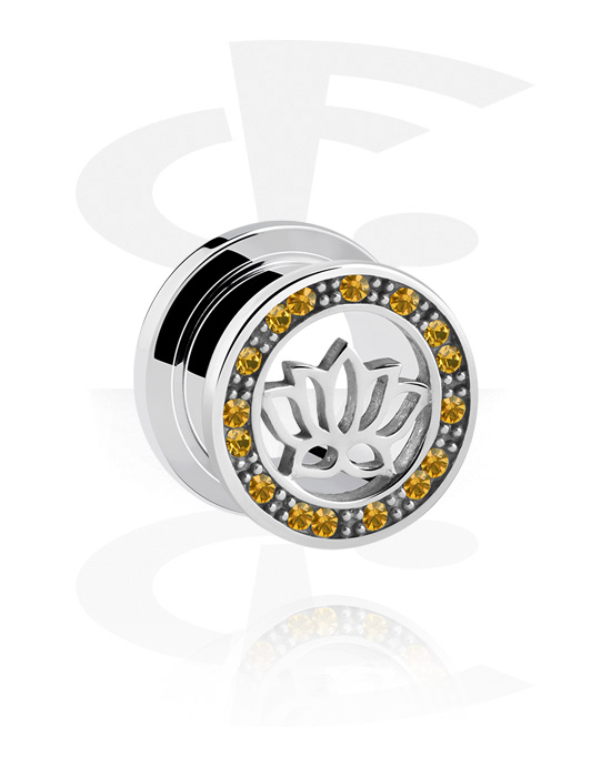 Tunnel, der skrues på (kirurgisk stål, sølv, blank finish) med lotusblomst-motiv