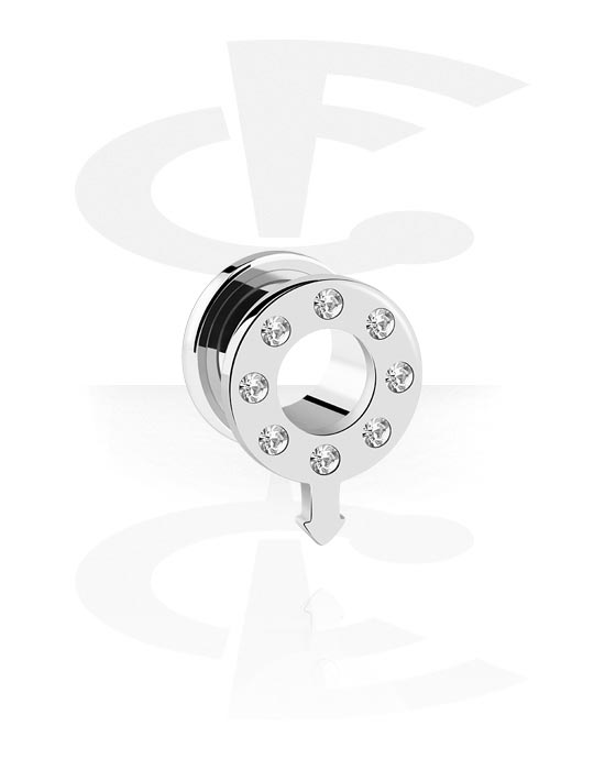 Tunnel, der skrues på (kirurgisk stål, sølv, blank finish) med Mars-symbol og krystaller