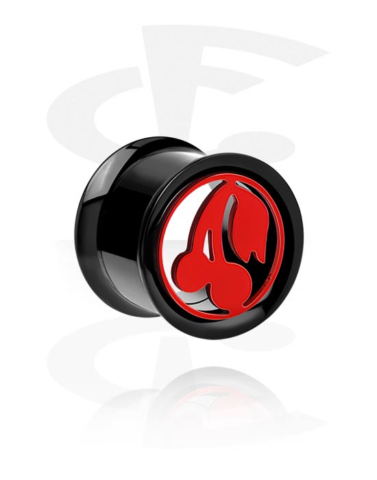 Double-flared tunnel (kirurgisk stål, sort, blank finish) med Kirsebærmotiv