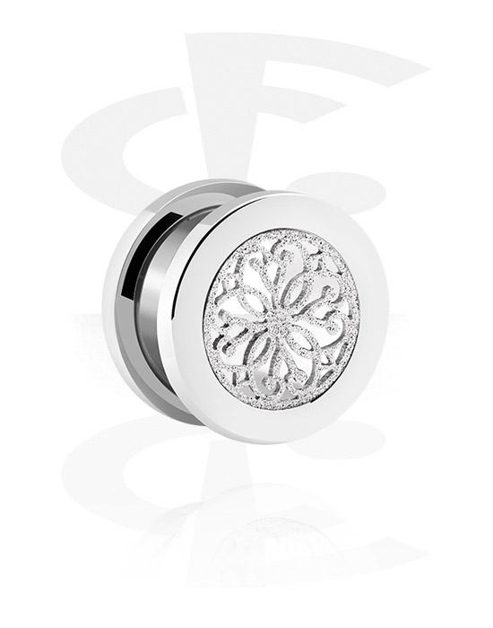 Tunnel, der skrues på (kirurgisk stål, sølv, blank finish) med mandala-vedhæng