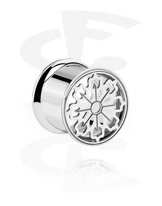 Double-flared tunnel (kirurgisk stål, sølv, blank finish) med blomstermotiv