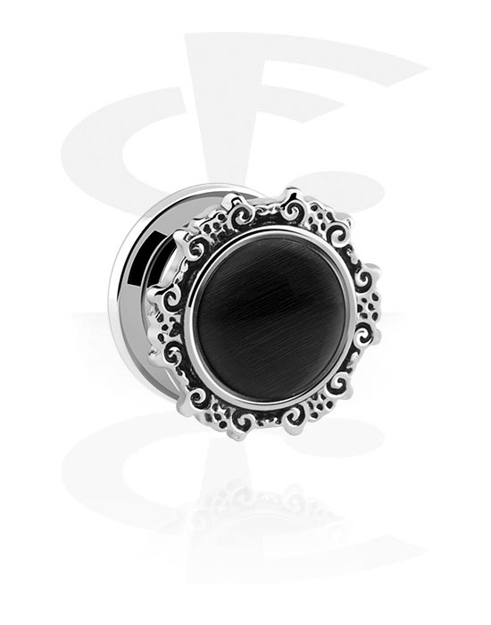 Tunnel, der skrues på (kirurgisk stål, sølv, blank finish) med hætte i flere farver