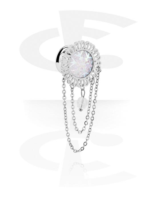 Double-flared tunnel (kirurgisk stål, sølv, blank finish) med snefnug og kæde
