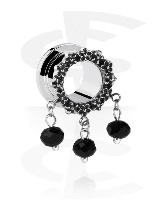 Tunnel, der skrues på (kirurgisk stål, sølv, blank finish) med blomstermotiv og charms