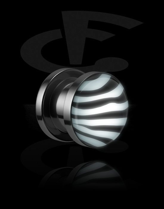 Tunnel, der skrues på (kirurgisk stål, sølv, blank finish) med LED-vedhæng og zebramønster