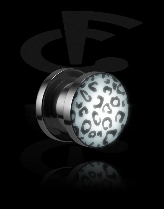 Tunnel, der skrues på (kirurgisk stål, sølv, blank finish) med LED-vedhæng og leopardmønster