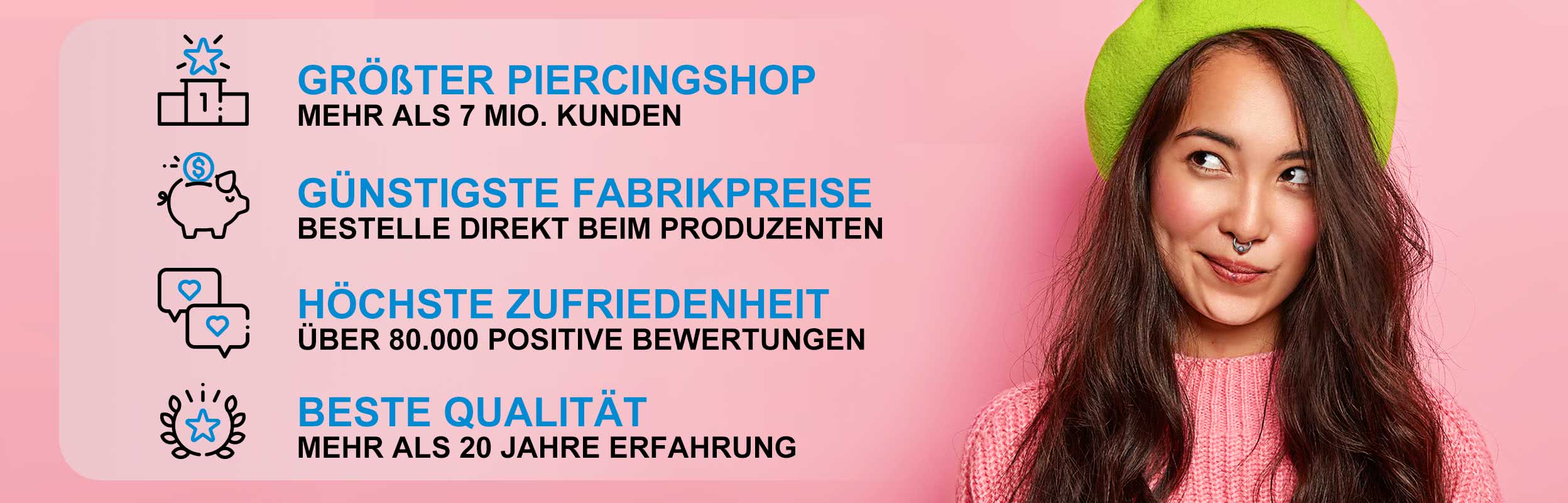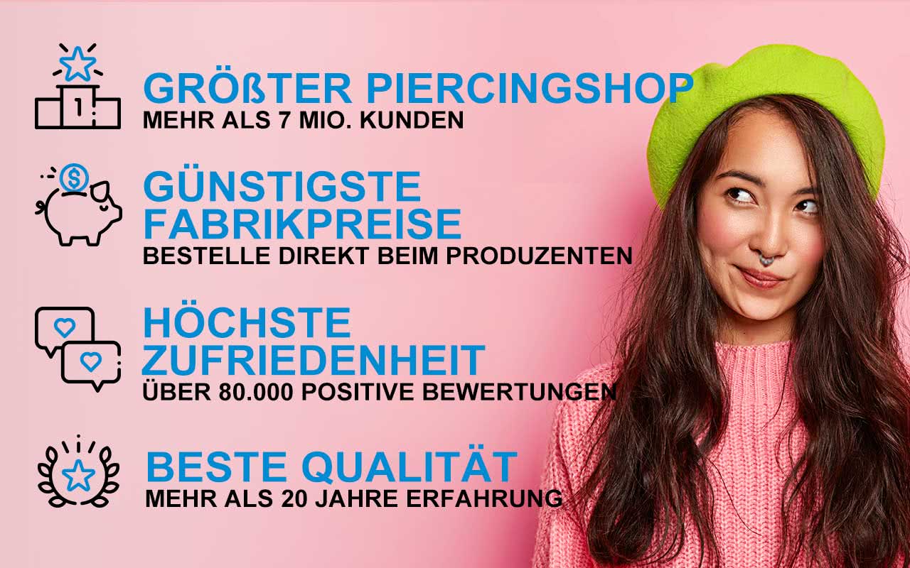 Ich liebe die große Auswahl, die Crazy Factory zu bieten hat. Da findet wirklich jeder etwas! Dazu übertrifft auch noch die Qualität die günstigen Preise. Für mich ist und bleibt Crazy Factory die Nummer Eins, wenn es um Piercingbedarf geht