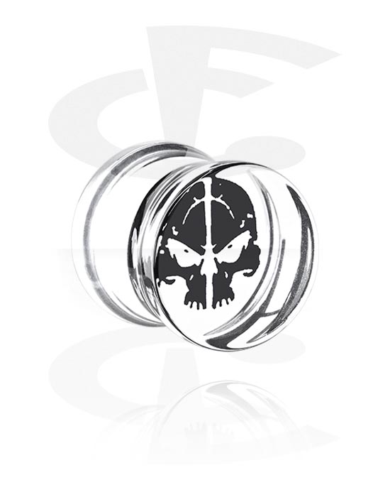 Grimmig glotzt euch dieser schwarze Totenkopf durch den durchsichtigen Acryl-Plug an. Mit diesem stylischen Plug ziehst du garantiert alle Blicke auf dich. Egal ob für Halloween oder das nächste Rock-Konzert, mit diesem Plug perfektionierst du dein Outfit garantiert.