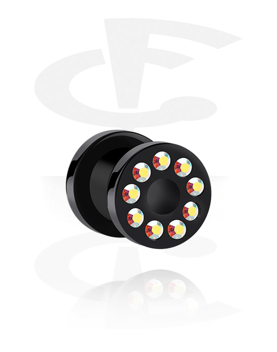 Dieser Flesh Tunnel aus schwarzem Acryl wird durch wunderschön funkelnde Kristallsteine ergänzt und ist zeitgleich schlicht, klassisch und edel.
