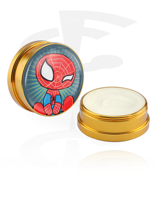 High quality jewelled container in a plug-like look, made of anodised aluminium. Available in various colours and designs. The deodorising conditioning creme takes care of your stretched earlobes and prevents bad smells. After a quick and easy application, the natural ingredients provide optimal skincare and nice smells.