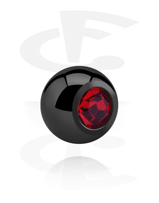 Ball for threaded pins (surgical steel, black, shiny finish) with crystal stone
