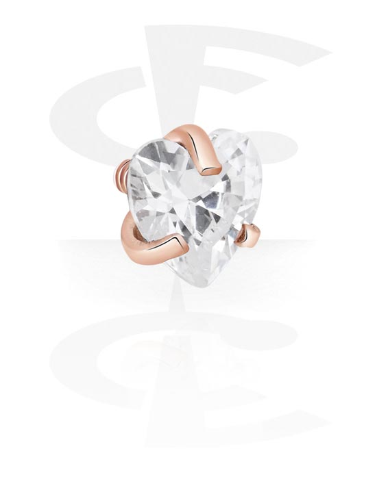 Attachment for internally threaded pins (surgical steel, rosegold, shiny finish) with crystal heart