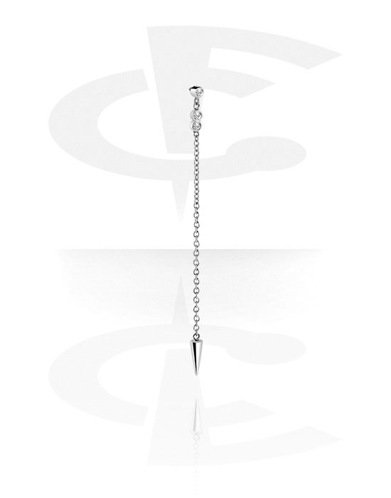 Attachment for 1.2mm internally threaded pins (surgical steel, silver, shiny finish) with chain and crystal stones