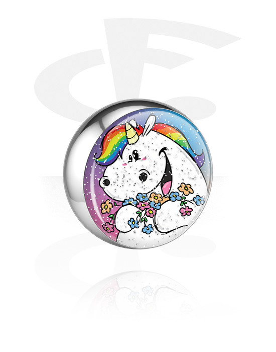 Attachment for 1.6mm threaded pins (surgical steel, silver, shiny finish) with Chubby Unicorn Design
