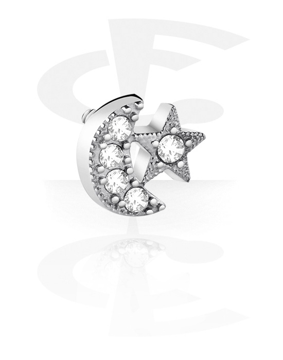 Attachment for internally threaded pins (surgical steel, silver, shiny finish) with Half moon design