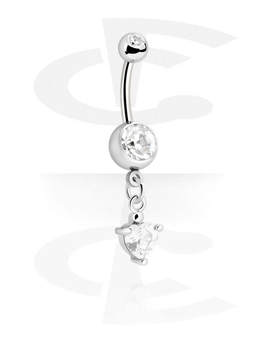 Belly button ring (surgical steel, silver, shiny finish) with heart charm and crystal stones
