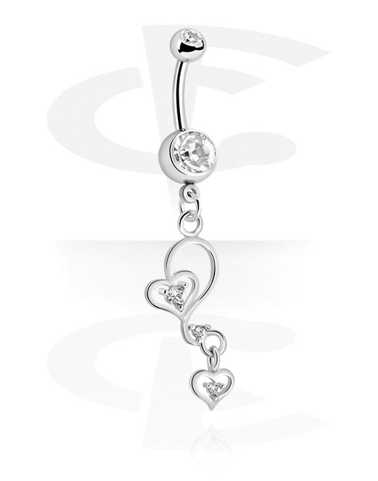 Belly button ring (surgical steel, silver, shiny finish) with heart charm and crystal stones