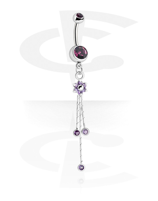 Belly button ring (surgical steel, silver, shiny finish) with flower charm and crystal stones