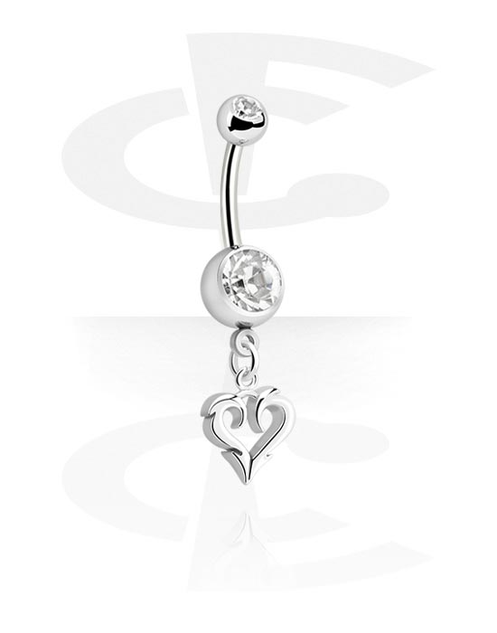 Belly button ring (surgical steel, silver, shiny finish) with heart charm and crystal stones