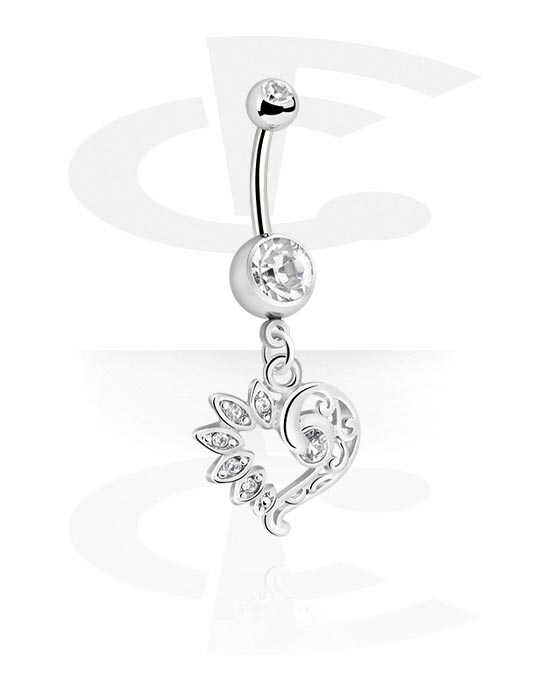 Belly button ring (surgical steel, silver, shiny finish) with heart charm and crystal stones