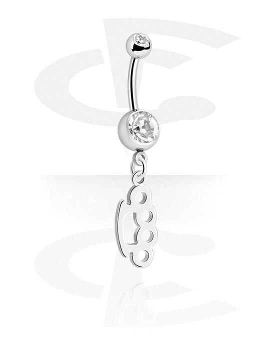 Belly button ring (surgical steel, silver, shiny finish) with brass knuckles charm and crystal stones