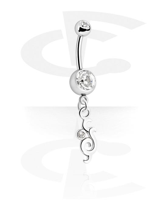 Belly button ring (surgical steel, silver, shiny finish) with charm and crystal stones