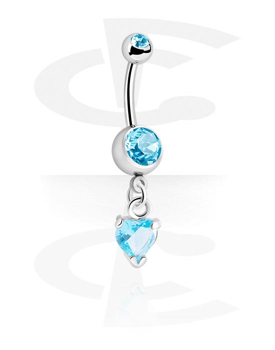 Belly button ring (surgical steel, silver, shiny finish) with heart charm and crystal stones
