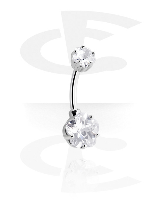 Belly button ring (surgical steel, silver, shiny finish) with internal thread and crystal stones