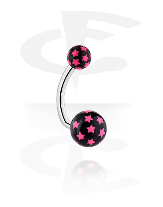 Belly button ring (surgical steel, silver, shiny finish) with acrylic balls and star design