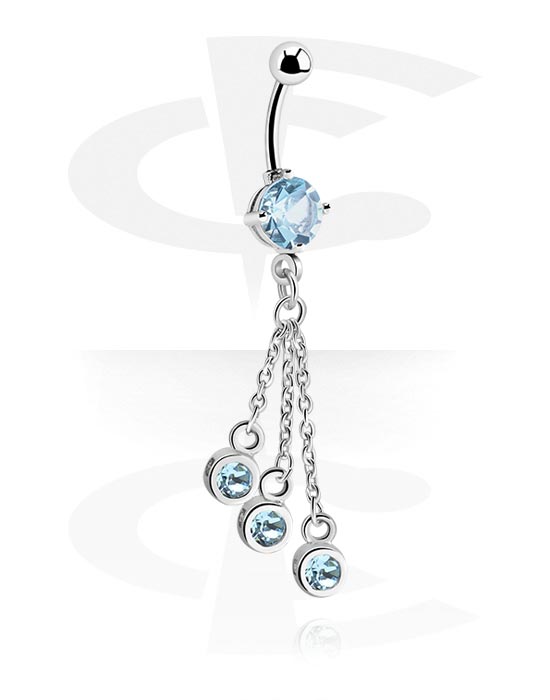 Belly button ring (surgical steel, silver, shiny finish) with charm and crystal stones