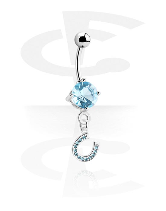 Belly button ring (surgical steel, silver, shiny finish) with horseshoe charm and crystal stones
