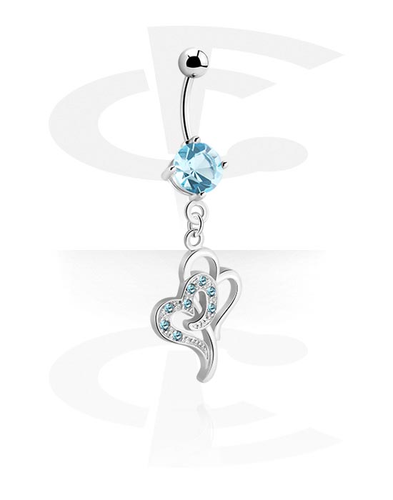 Belly button ring (surgical steel, silver, shiny finish) with heart charm and crystal stones