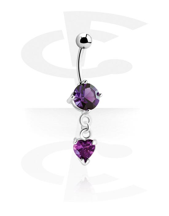 Belly button ring (surgical steel, silver, shiny finish) with heart charm and crystal stones