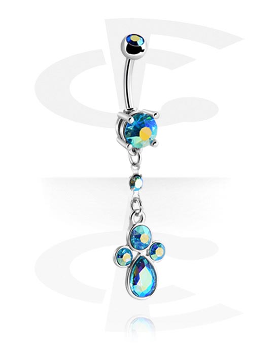 Belly button ring (surgical steel, silver, shiny finish) with charm and crystal stones