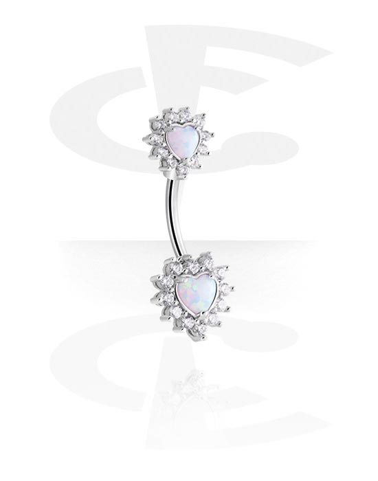 Belly button ring (surgical steel, silver, shiny finish) with heart design and synthetic opal