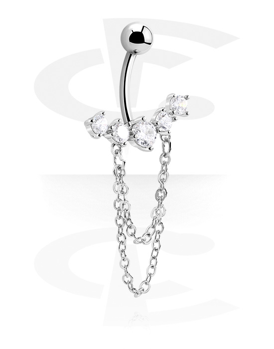 Belly button ring (surgical steel, silver, shiny finish) with crystal stones and chain